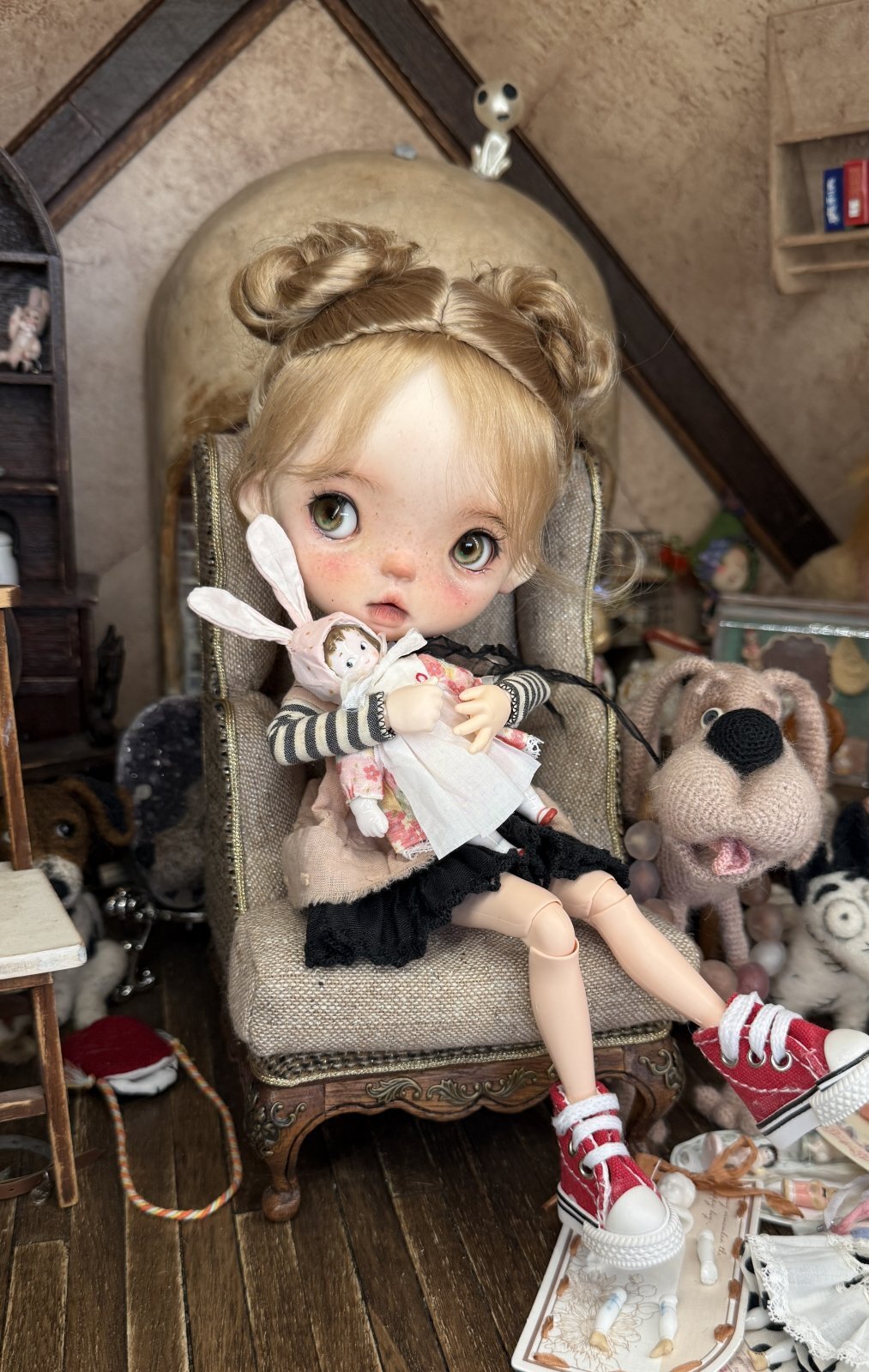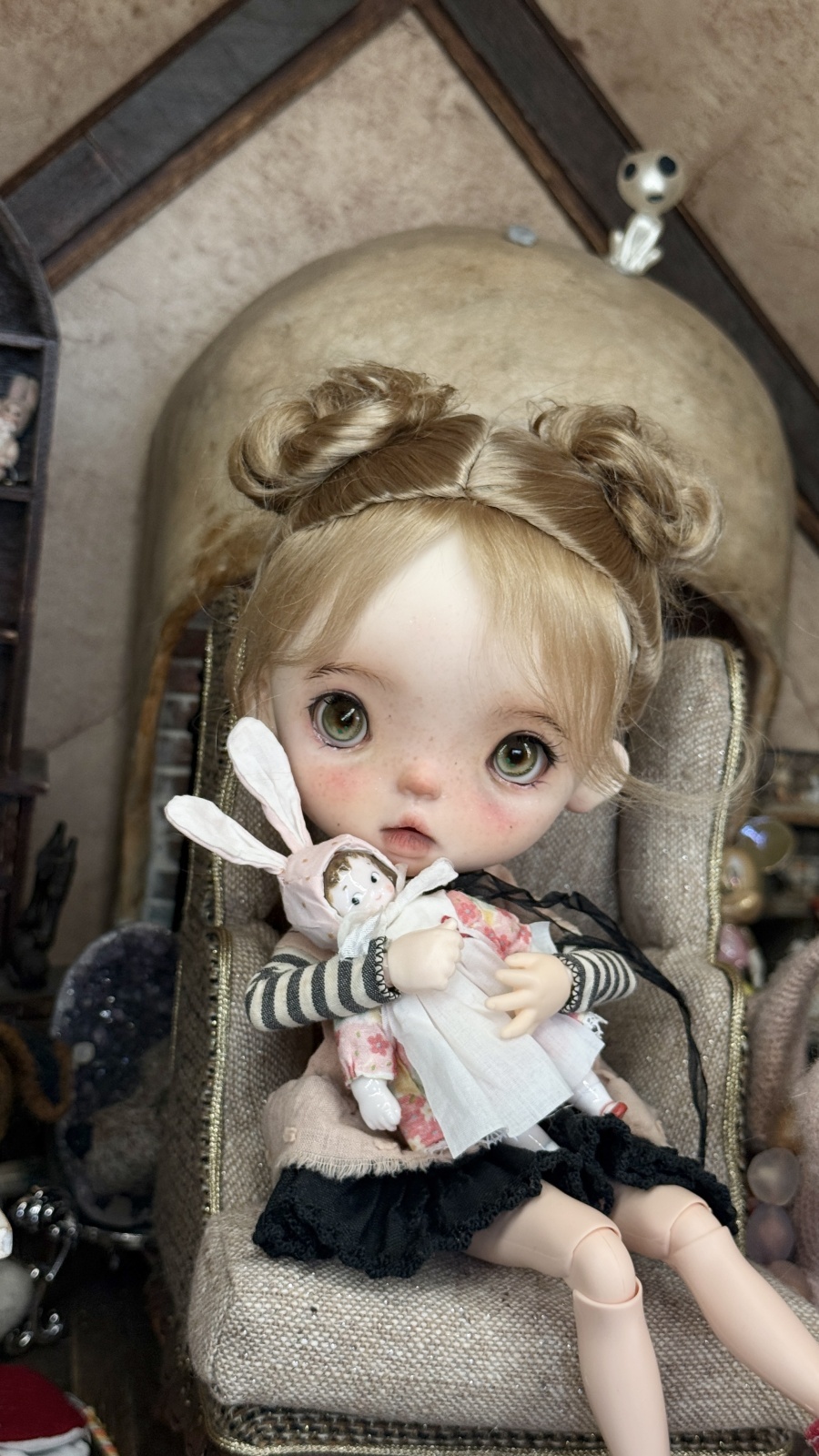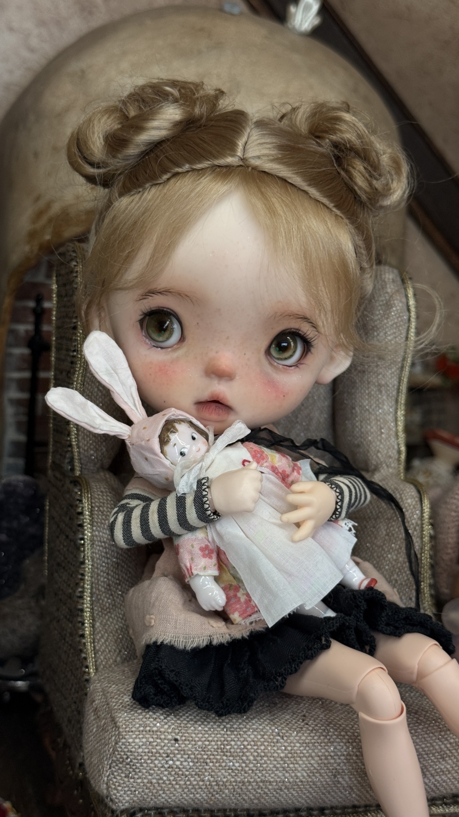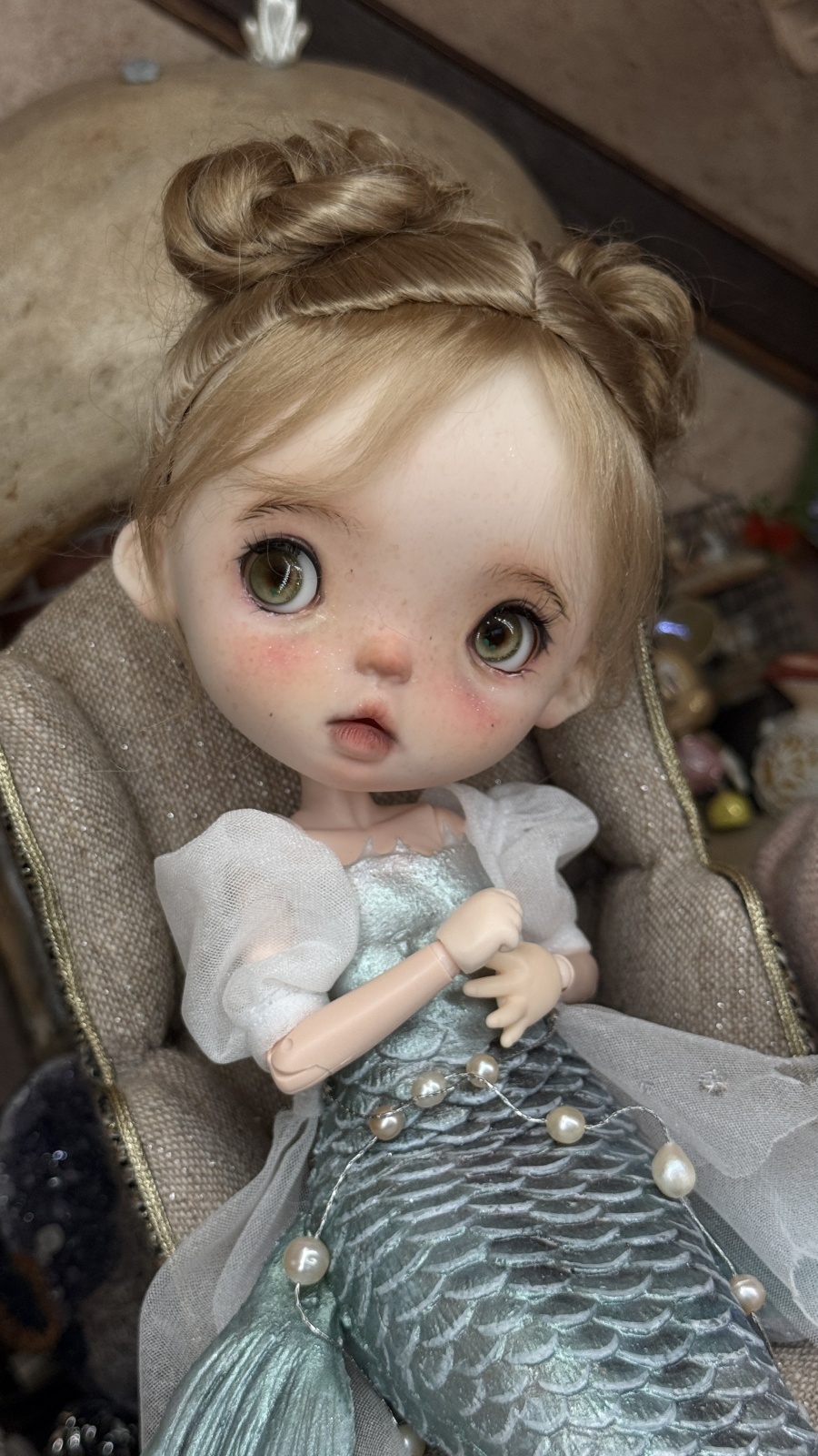 Adoption Nini include: eyelids, double side eyeballs,eyes holder, metal neck, ob24 body, wig, dress, Pearl neckless. shoes